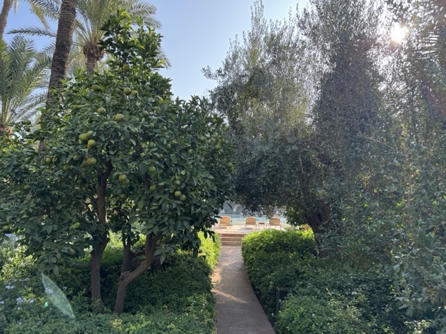 The hotel’s gardens spread around and beyond the main pool, with lawns, citrus trees, olive trees and numerous varieties of palm and cactus.