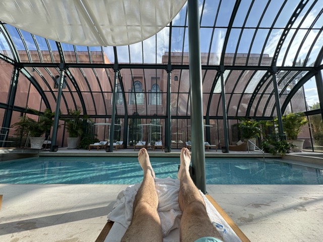 In a lounger (very comfortable) after trying out the indoor pool at the spa.