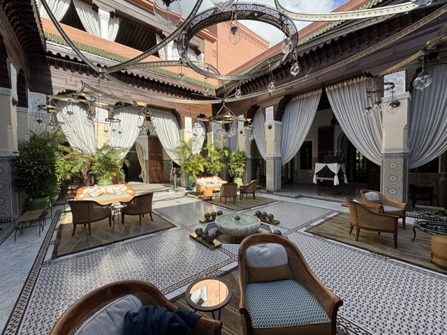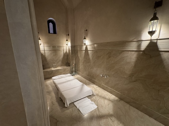 The bedroom in the riad had heavy curtains, carved headboards or wall panelling, and a combination of traditional lanterns and more contemporary bedside lamps. Take a look at these photos to get an idea of the quality of furnishings and fittings. Everything really is the best of the best here.